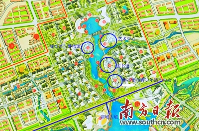 四大馆的具体规划位置示意图。 南方日报记者 王良珏 摄 |