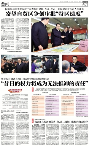 据省编办主要负责人透露,其他42个省直部门的清理工作也已基本完成。广东还将以广州开发区和南沙新区、深圳前海合作区、珠海横琴新区作为试点,大胆开展转变监管方式先行先试。