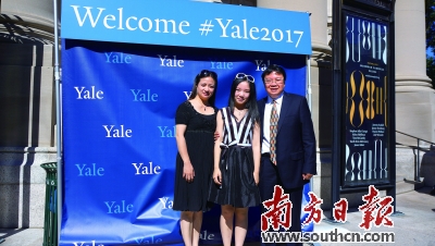 李思琳与父母一起参加耶鲁大学2017届学生开学典礼。 |