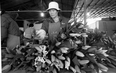 一名增城的花商告诉记者,他在增城有基地,专门种植百合花,并送到批发市场交易,按照个头和质量,百合花价格从70元至200一束不等。根据他多年交易的经验,诸如菊花、玫瑰、百合、康乃馨等鲜切花的价格每日都不一样,或受质量、产量、天气、节日等因素影响。