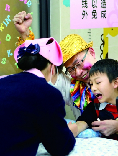 自从做了“小丑医生”,唐远平每次想到逗孩子的“新招”都会先在儿子面前预演,“他是我的‘把关者’,要先把他逗笑,我才去医院逗别的孩子。这个活动让我有了更多与孩子直接交流的机会,我也希望能有更多的时间去好好陪儿子。”