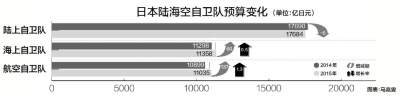原本按照“中期防计划”,直到2016年度,日本的防卫预算才有可能突破5万亿日元,然而,根据今年1月9日日本内阁通过的补充预算案,新增的运输直升机等购置费,以及冲绳县与那国岛基地建设费等共计2110亿日元被计入本年度防卫预算,因此,2015财年(2015年4月至2016年3月)日本防卫预算已然超过5万亿日元。