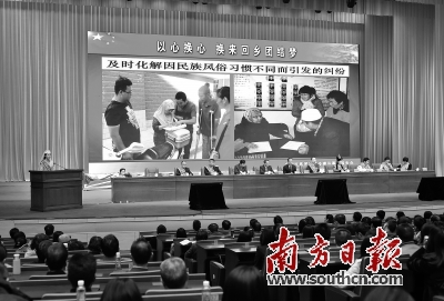 发言代表讲述显示民族团结正能量的感人故事。南方日报记者 王辉 摄 |