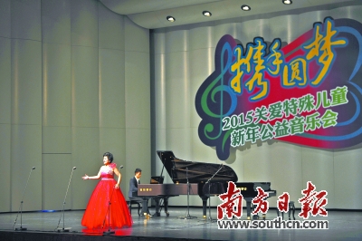 用音乐温暖心灵,用爱心点亮希望,让特殊儿童亮出风采、绽放快乐……16日,由中山市教 育和体育局、中山市特殊教育学校联合主办的2015年 “携手圆梦”新年公益音乐会在市文化艺术 中心举行。中山市特校自闭症学生林炽宏、中山市教师声乐团等为观众带来了钢琴独奏、双琴协 奏、舞蹈、对唱等。活动还为爱心捐资的企业家和单位颁发了慈善奖牌。据中山市特校相关负责 人介绍,此次公益音乐会所筹善款均用于特殊儿童家庭,由中山特校家长互助会执行。音乐会以 艺术欣赏为主体,以感恩和慈善为主题,旨在弘扬扶残助残的良好社会风气,激发社会对慈善公 益事业的大爱之情。
