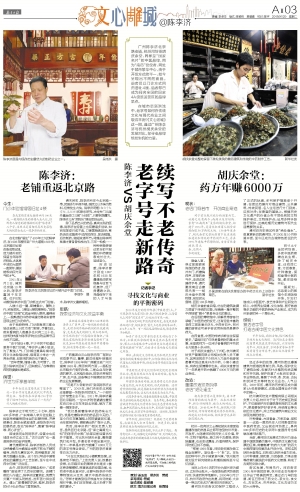 然而,陈李济药厂相关负责人坦言,虽然回归北京路,但“束之高阁无人知”的陈李济中医门诊部目前经营状况并不理想。对比杭州胡庆余堂,整栋建筑打包开发,并请名老中医坐堂问诊,创下一年单是开药方就赚了6000万元的老字号商业奇迹,广州的陈李济显得苍白无力许多。