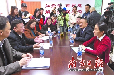 督导检查小组在接访点调处劳动纠纷案件。 李细华 摄 |