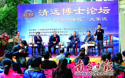 南方日报讯 (记者/魏金锋 邱羽琪 清远新闻记者/邓文燕 通讯员/刘景丽)由广东省社会科学院清远分院、清远市社会科学界联合会、南方日报清远记者站联合主办的2015年首期清远“博士论坛”于17日上午正式开坛。来自广东省社科院产业经济研究所的博士邓江年等5位博士、专家学者围绕“广清一体化”主题,从政策机制、人才、物流、旅游等方面为广州和清远的融合发展畅所欲言,共献良方。