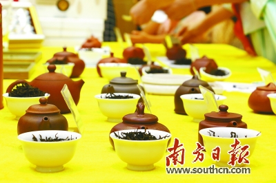 | 大赛根据紫砂壶的容量进行投茶。 |