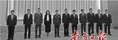| 南海区新一届区委常委集体亮相。从左至右依次为:黄志豪、郑灿儒、李军、黎妍、潘建刚、李晓佳、李伟成、郑作勋、蔡汉全、刘铭恩、张敬文。南方日报记者 李慧君 摄 |