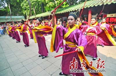 | 祖庙孔圣园正式开放,年轻的舞者跳起传统的六佾舞。南方日报记者 戴嘉信 摄 |