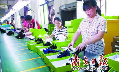 | 惠东部分鞋企逐渐走向现代化生产。南方日报记者 王昌辉 摄 |