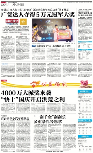广东省福彩中心定于9月下旬在全省范围内(不含深圳)开展“头奖翻倍等你拿,一刮千金好运来”大型促销活动,该活动分两个时段进行。
