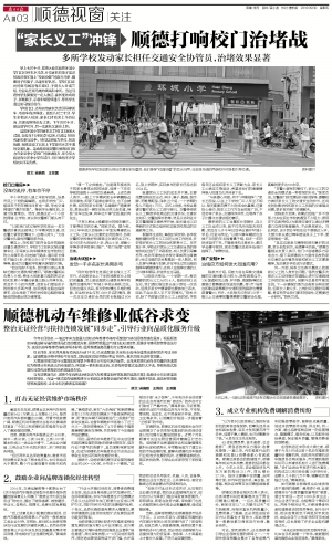 在连锁店还未形成火候之前,顺德于今年8月成立首个机动车维修质量纠纷调解机构,由政府向顺德机动车维修协会购买服务,市民遇到维修纠纷可以申请该机构介入进行免费调解。“我们会派出专家进行技术鉴定,机构成立以来已经处理10多宗纠纷,金额从几千到几万不等,调解成功率超过九成。”黄海泉说。