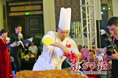 | “闻香识顺德”美食巡展上,厨师精湛的刀工引来食客惊呼。 |