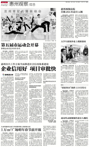 市发改局负责人介绍,惠州将开展综合性试点示范。例如,实施信用示范县(区)、示范镇(街道)和示范村创建工程,纵向推进信用体系建设;开展专项试点示范,推进在金融信贷、税收缴纳、安全生产、产品质量、环境保护、市场监管、工程建设、电子商务、招标投标、劳动保障等重点领域的专项示范工程建设,部门联动推进社会信用体系建设。