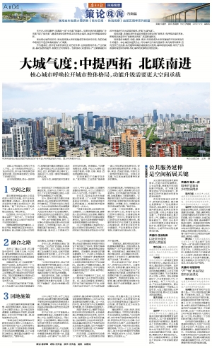 作为建成区,香洲可供新开发的土地已经不多,公共服务的优化、产业的发展、基础设施的提升,都受到空间的限制。创新驱动、交通枢纽、产业聚集辐射和对外开放合作四大功能的强化,呼唤“大城气度”。