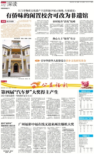 结合江门建设华侨文化生态保护实验区的工作,张国雄建议,闲置侨捐学校的再利用,可从文化建设方面着手。“江门的非物质文化遗产丰富,但目前正面临着缺少展示场地的问题,如果能把闲置的校舍变为非物质文化遗产展示中心,可助力江门的华侨文化建设。”据了解,目前江门已有白沙茅龙笔、罗氏柑普茶、新会鱼灯、茶坑石雕制作、荷塘纱龙以及开平民歌等101项本土非物质文化遗产项目。
