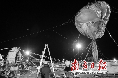 | 放飞前,光启工作人员为“旅行者”2号验证版充气。南方日报记者 鲁力 摄 |