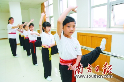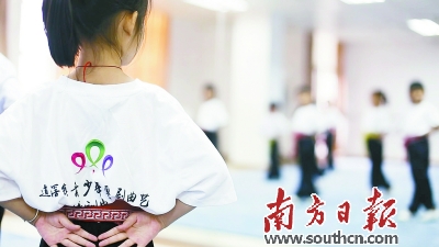 | 在“粤剧曲艺进课堂”活动中,道滘青少年在排练粤剧。 |