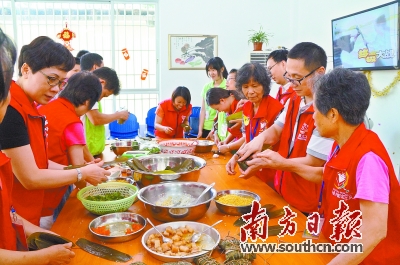 要建设好“邑家园”,还必须在整合资源上下功夫,创新整合资源模式,抓好“资产、服务、人才、资金”四方面的资源整合。如北门社区“邑家园”就充分利用闲置的仓库、店铺,盘活资源,设置社区公共服务站、长者日托中心、社区膳堂等,有效融合了党建、民建、社建,“三建合一”,是因地制宜、“就菜下饭”的典型。据介绍,江门还将于年底前全面实现“邑家园”服务全覆盖。
