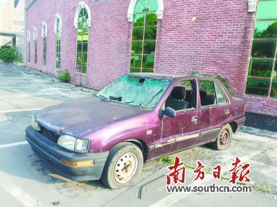 | 昔日繁荣的亚洲陶瓷展厅门口,如今只停着一辆废弃的汽车。 |