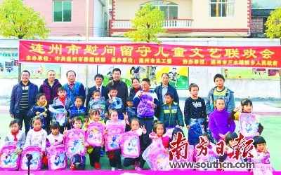 原来,连州市委组织部以及关工委领导前来慰问留守儿童,为26位留守儿童送上了书包和文具等慰问品,并为同学们准备了一场精彩的文艺汇演。“东方红”“奔腾在千里草原”“潇洒女兵”等一个个精彩纷呈的节目轮番上演,博得现场观众的连连喝彩声和阵阵掌声。