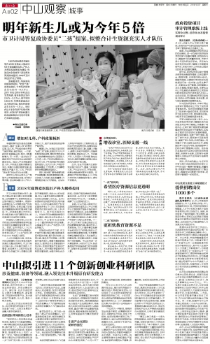 虽然中山尚未出现北上广等城市三甲医院被迫实施儿科限诊等问题,但也面临着儿科、产科人手缺口大、医疗资源面临挑战等严峻形势。