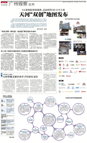 拿着一张地图,就能快速找到遍布天河区各个角落的84个孵化器、众创空间。不了解天河区创新创业政策,地图上还有27家企业服务公司、25家科技服务机构的位置。首届广州国际创新节期间,天河区发布“双创”地图,将天河区丰富的创新创业资源以地图标识的形式向社会公众呈现。