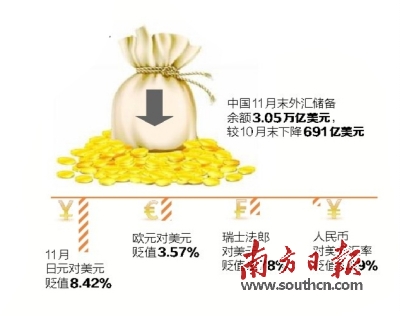 我国11月外汇储备 余额3.05万亿美元