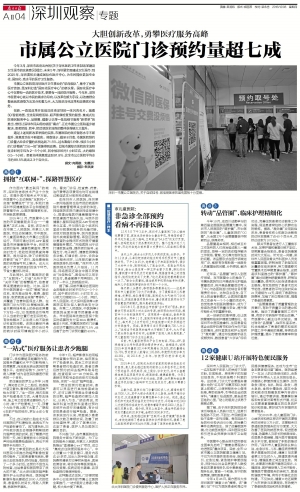 创新,一直是改革开放前沿阵地深圳的一张闪亮名片。随着3D智能地图、全流程网络医院、超声影像检查预约服务、集成式住院便民服务中心、品管圈、健康U站等一批批细节服务“新菜单”的推出,曾经让深圳市民头疼的就医“痛点”,正在市属公立医院逐步被解决,患者院前、院中、院后就医全流程的整体获得感大大提升。