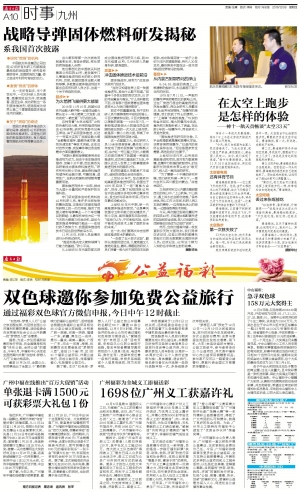 “早期火箭和导弹都使用液体推进剂为动力。但由于液体推进剂储存、运输十分不便,因此美苏先后研制成功固体燃料推进剂。”研究所所长张小平说,固体燃料推进剂储存和运输方便,可靠性高,适用性广,在航天和国防领域都有着重要用途。