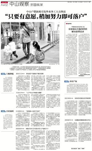 一石激起千层浪。中山推动户籍制度改革的消息昨日发出后,便引发许多外来务工人员的热议,不少企业负责人表示“政策来得及时、接地气”。从政策层面出发,记者将以“门槛降低”“企业福利”与“产权改革”三个关键词,对中山户籍新政作详细梳理。