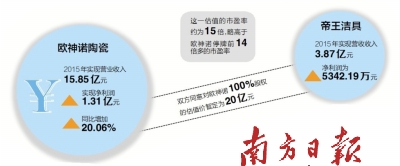 张若楠则认为,帝王洁具上市后,从财务数据上看,明显后劲不足,并购对上市公司除了产业链的协同和整合,他认为更多还是从财务因素考虑。“收购后欧神诺每年能给帝王洁具带来超过1亿元的净利润,这对上市公司的持续经营和市值管理都是相当重要的。”