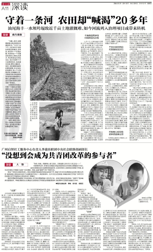 这为高北村陂头的重建带来了契机,但楼下村和塘尾村的村民显然已经等不及。“农田没水灌溉就没法出租。为了发展,我们准备把农田租出去种植高产值的品种,已有客户来看过。”楼下村村民小组组长阮君平说,从12月初开始,他已开始组织人手,在陂头原址附近开始修建临时陂头,“需要花费10多万元,但洪水一冲肯定又会垮掉”。