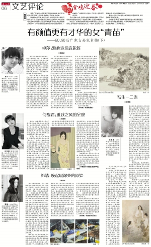 当编者在“青苗”的群英谱里看到这一张张青春面孔时忍不住向读者推荐她们。本期继续推出80、90后广东女画家素描(下),请读者垂注。
