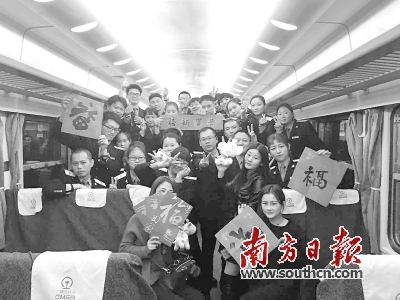 南方日报讯 (记者/黄思华 陈萍 通讯员/何利波)27日16:50,汕武二组值乘的K800次列车缓缓地离开汕头站,列车上41名工作人员又在火车上度过新年,“真的记不清这是在车上度过的第几个春节了。”列车广播员王媛媛说。