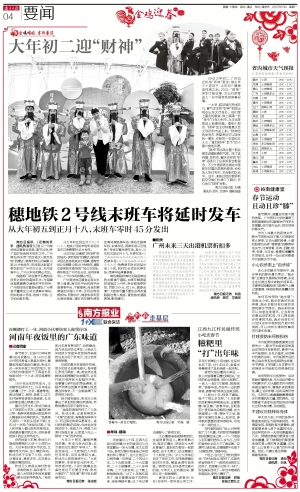 从大年初五到正月十八(共14天),地铁2号线末班车将延时至次日凌晨零时45分发车。