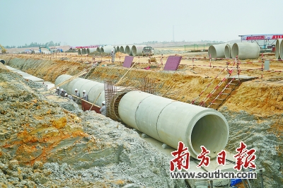 | 中科炼化项目排水渠施工现场。 |