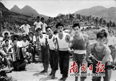 | 连县毛泽东思想文艺宣传队1971年在农田水利建设工地演出。 资料图片 |