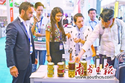 | 2016海丝博览会上,国外采购商了解商品价格和质量。南方日报记者 孙俊杰 摄 |