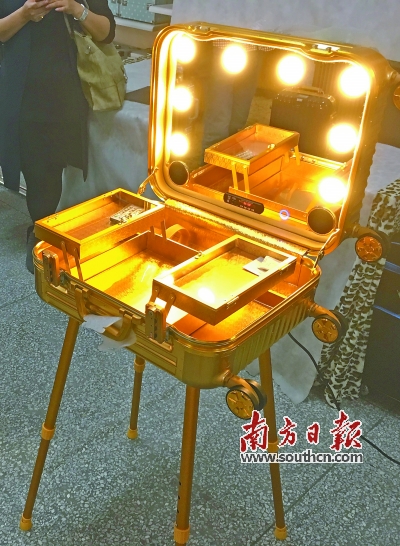 在厚街的亚臣泰箱包制品科技有限公司(以下简称“亚臣泰公司”),专业生产化妆箱包,他们的产品是自主品牌,但是在国内外畅销,不仅受到迪拜土豪们的欢迎,国内外一线明星也以拥有一款他们的化妆箱为荣。这款受到明星追捧的化妆箱将首次亮相加博会。
