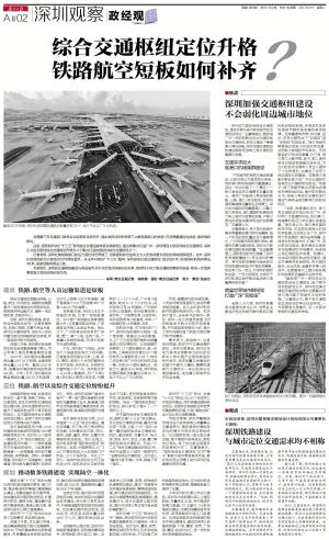 专家指出,深圳的交通枢纽建设与周边城市并不完全是此消彼长的关系,而有利于珠三角交通枢纽集群化发展,将进一步提高粤港澳大湾区的地位和作用。