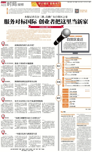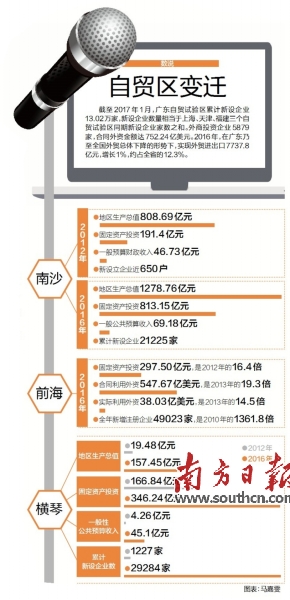 近1800天的时间里,三大片区演绎了怎样的生动变化?11日,南方日报派出三路记者,分赴南沙、前海、横琴三地进行同步直播,直击广东自贸区建设第一现场。