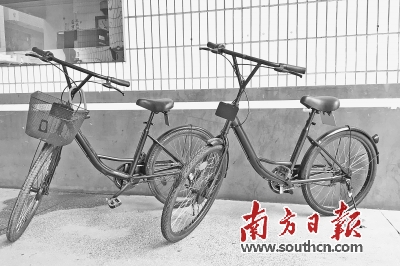 | 小黄车被喷漆变成黑色,还加了个菜筐。南方日报记者 孙俊杰 摄 |