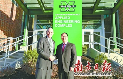 | 马歇尔大学相关负责人(左)和白云山汉方董事长袁诚在签约现场合影。 |