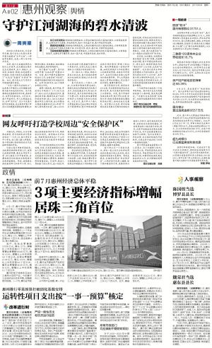 当前,惠州正在建设绿色化现代山水城市,试点建设全国水生态文明城市,东江、西枝江、大亚湾、红海湾、西湖、红花湖等江河湖海,为惠州绿色化发展提供了“水生态”底蕴与“水资源”命脉。为此,惠州花大力气守护江河湖海的碧水清波。
