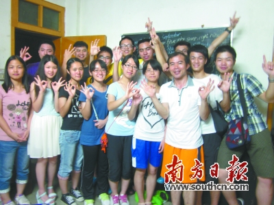 大学生到钟国强家探望。 |