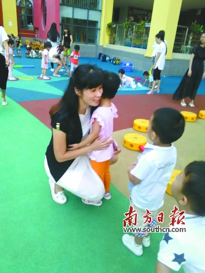 刘婉芬拥抱幼儿。 |