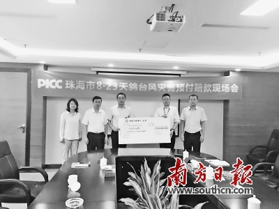 8月25日,台风“天鸽”走后第二天,珠海市某海洋生物有限公司已获得保险赔款106.92万元。