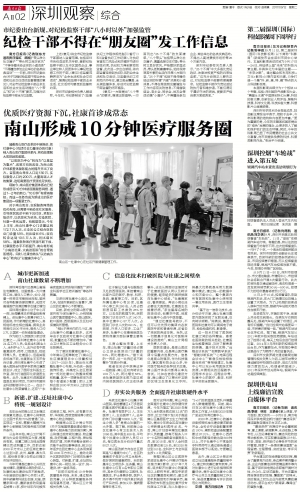 “目前已经形成10分钟就医圈服务网络,未来,通过服务的完善,10分钟就医圈服务网络有望再压缩。”南山区卫计局相关负责人说。